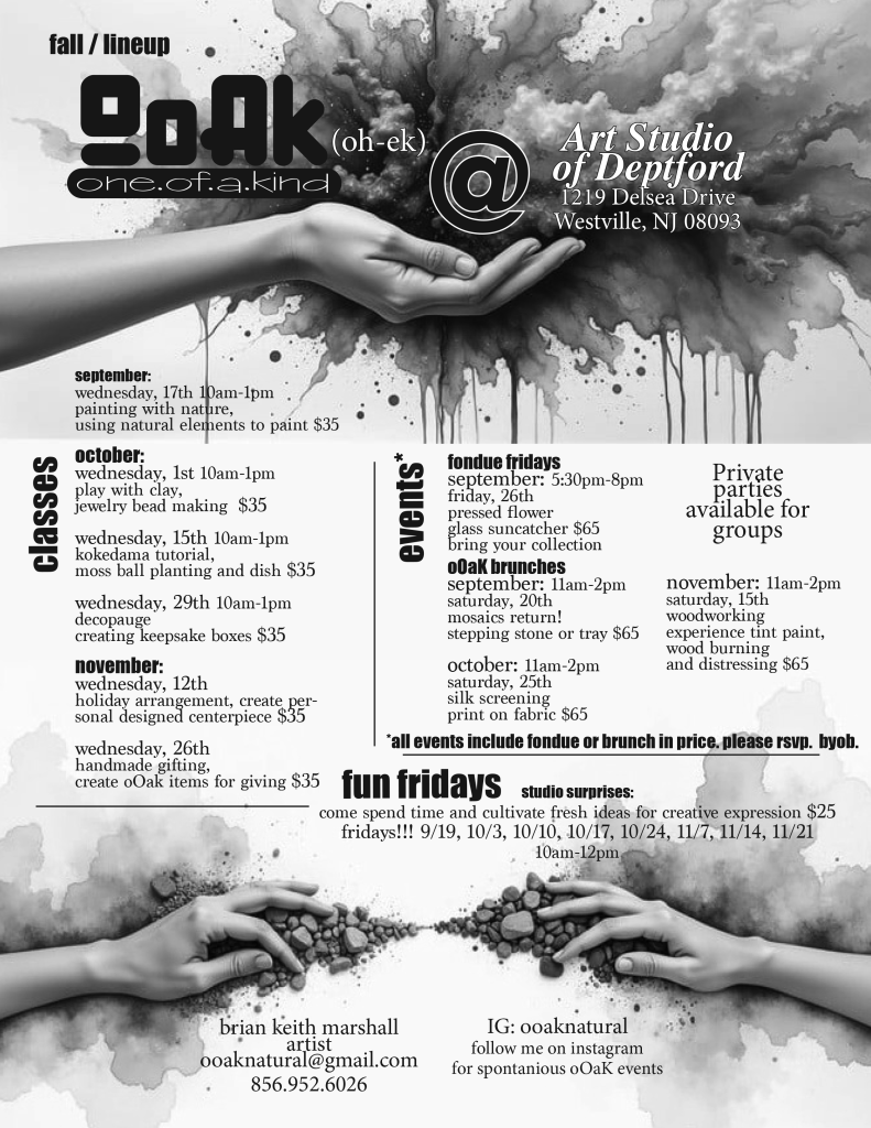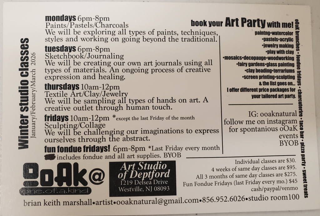 Includes all materials, 1 adult and 1 child, additional child $10.00